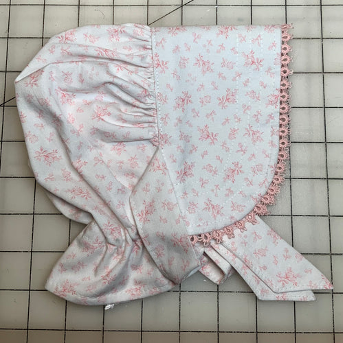 • Prairie Bonnet, Vintage Rose Fabric -Shuttle Tatted Edging or Plain