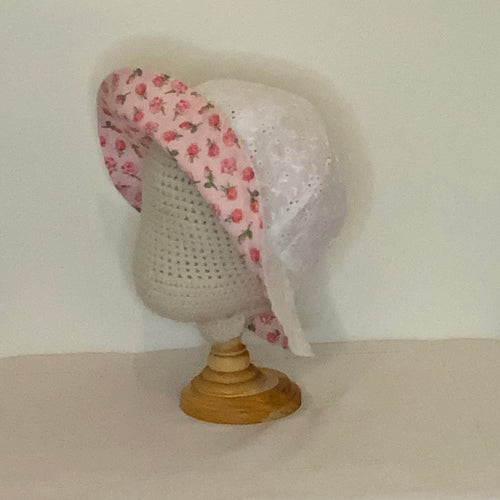 Sun Hat - White Eyelet, Pink Broadcloth w/ Pink Roses